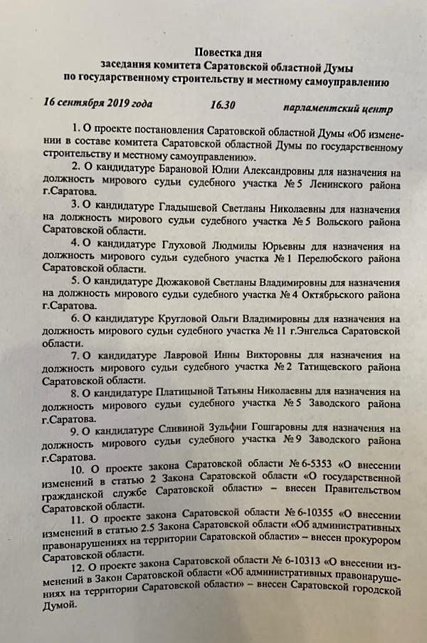 Сегодня принял участие в очередном заседании комитета областной Думы по госстроительству и местному самоуправлению. По традиции, в начале заседания рассмотрели кандидатуры на должности мировых судей.