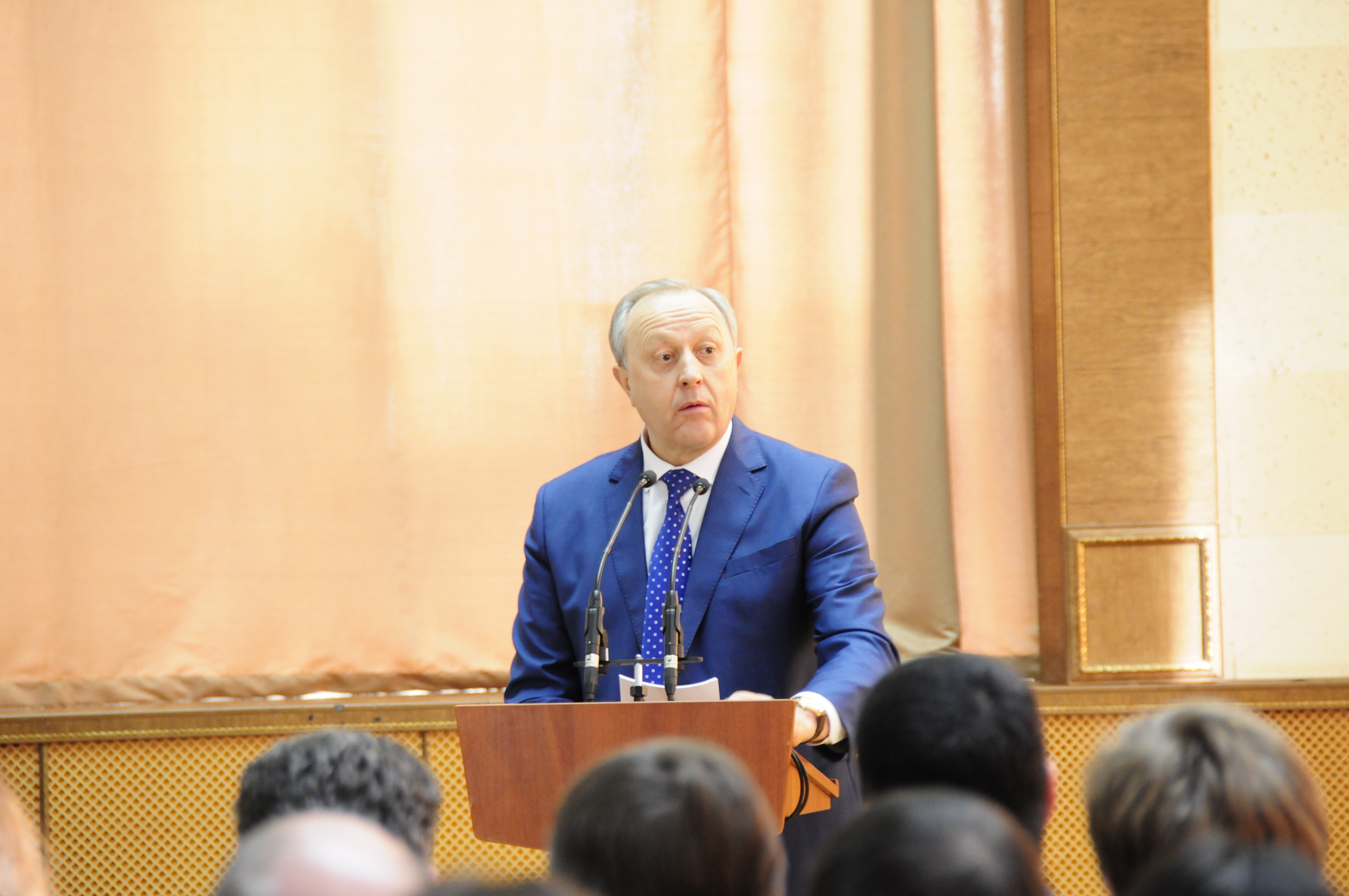 В 15.00 началась встреча губернатора Саратовской области с представителями бизнеса области по итогам экономического форума «Движение только вперёд». Среди участников депутаты всех уровней, руководители крупных предприятий, лидеры гражданского общества. Губернатор сказал, что в первую очередь хотел поговорить с представителями среднего и малого бизнеса. Он рассказал о достижениях в экономике области в последнее время. К ним относится ввод в строй бальнеолечебницы, как одного из звеньев оздоровительной и туристической цепи, новой поликлиники в Соднечном-2 (планируется открытие еще нескольких в сельских районах). Напомнил о задачах, поставленных Президентом в послании. Кратко подвел итоги форума.